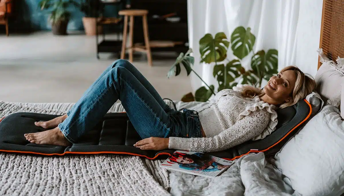 Konstrukcja maty jest bardzo elastyczna i pozwala na korzystanie z niej w różnych pozycjach. Leżąc na kanapie przed telewizorem czy siedząc w ulubionym fotelu. Pełna powierzchnia masująca Cosy vibra pozwoli wykonać pełny masaż bez zmieniania pozycji.