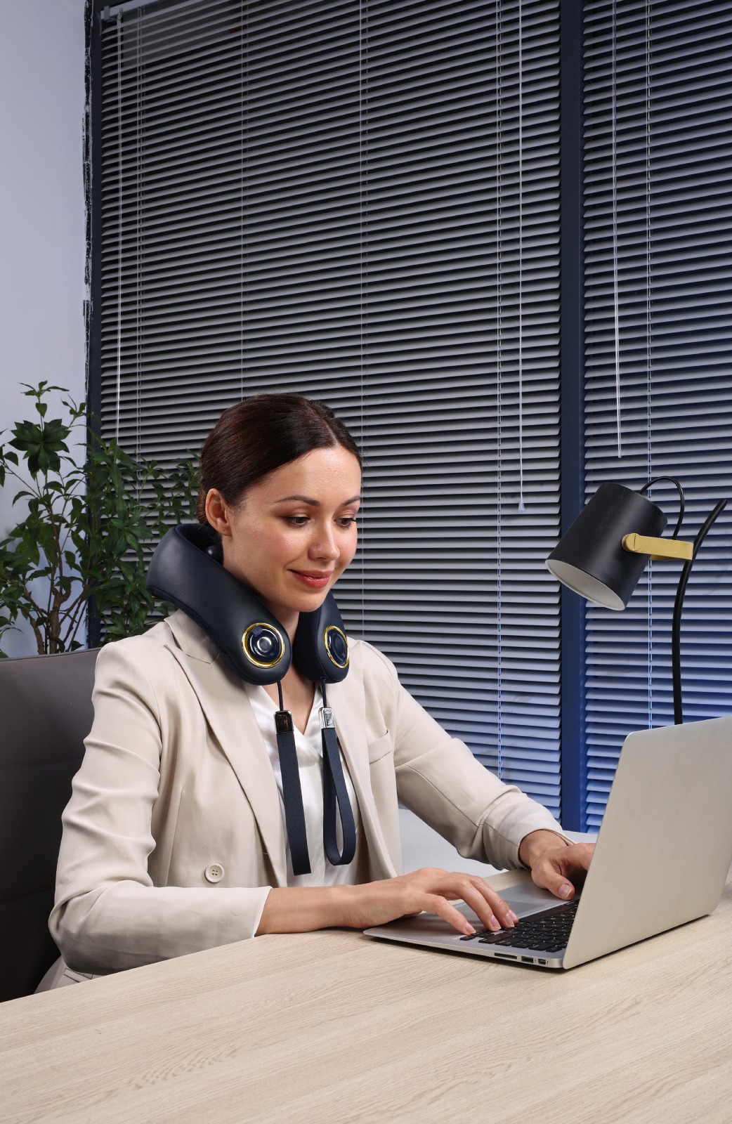 Bezprzewodowa konstrukcja kołnierza Collar Grand pozwala na swobodę ruchów i korzystanie z urządzenia w dowolnym miejscu. Dzięki temu, możesz cieszyć się luksusem profesjonalnego masażu, niezależnie od tego, gdzie się znajdujesz.