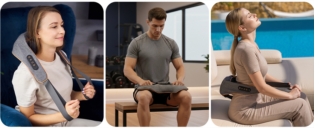 Funkcja grzania w urządzeniu wspiera rozluźnienie spiętych partii ciała oraz pobudza krążenie. Masaż Shiatsu, klasyczny lub relaksacyjny, w połączeniu z przyjemnym ciepłem, pomaga złagodzić sztywność karku i barków. Dzięki temu masaż staje się nie tylko formą relaksu, ale także realnym wsparciem w regeneracji mięśni po długim dniu lub wysiłku fizycznym.