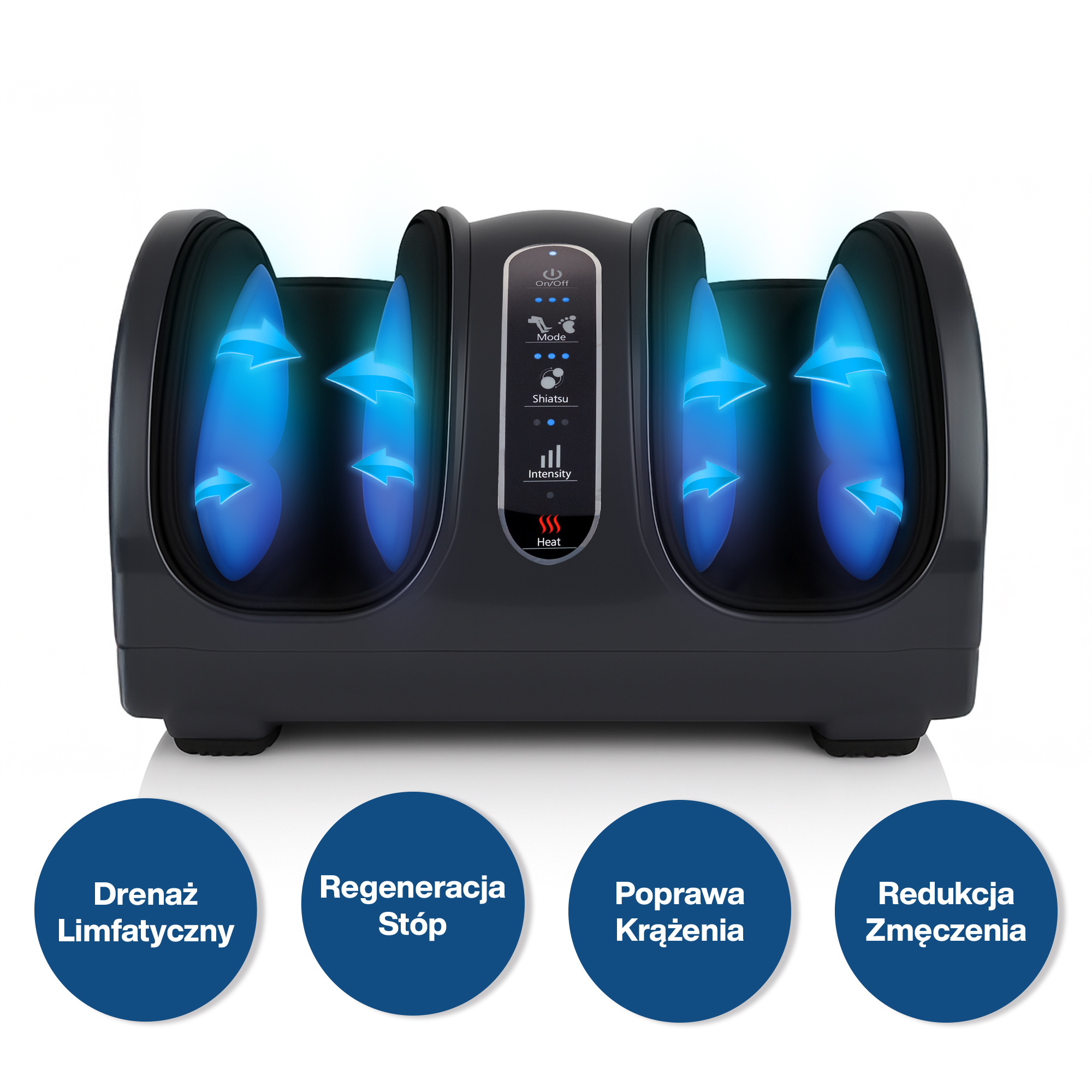 Innowacyjny masażer do stóp oferuje nie tylko masaż Shiatsu, lecz także masaż powietrzny oraz unikalny tryb drapania, które skutecznie stymulują przepływ krwi, redukują opuchliznę i łagodzą objawy zespołu niespokojnych nóg. Szczególnie korzystny dla osób o siedzącym trybie życia, który często wiąże się z problemami krążenia.