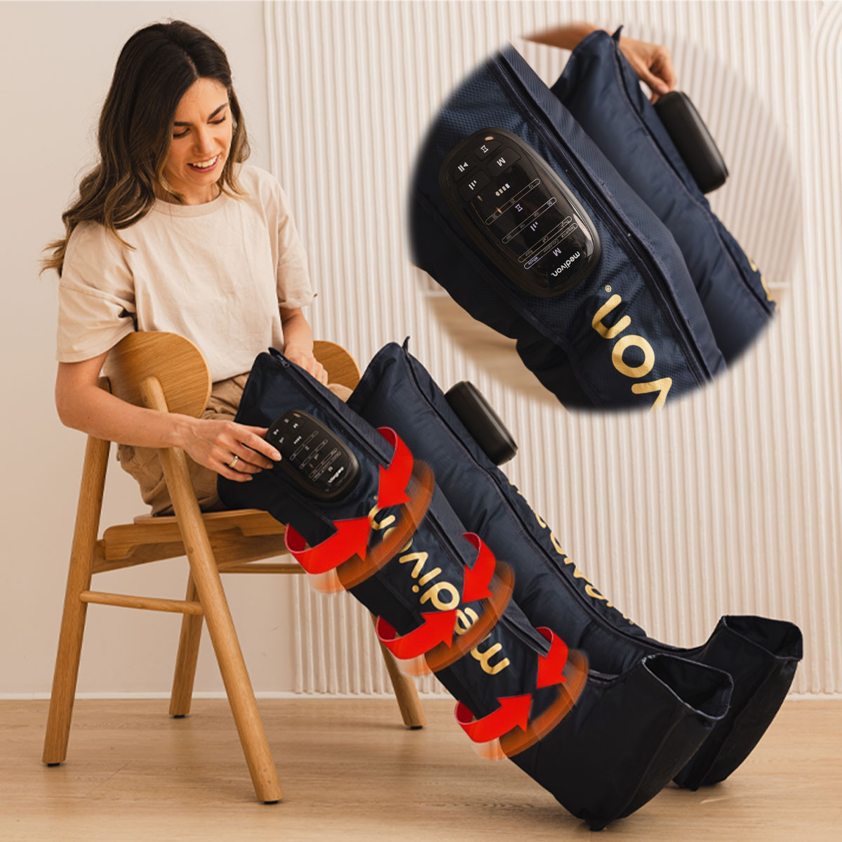 MEDIVON Aeria to masażer uciskowy, który skutecznie wspiera redukcję obrzęków oraz poprawę krążenia i regeneracji mięśni.