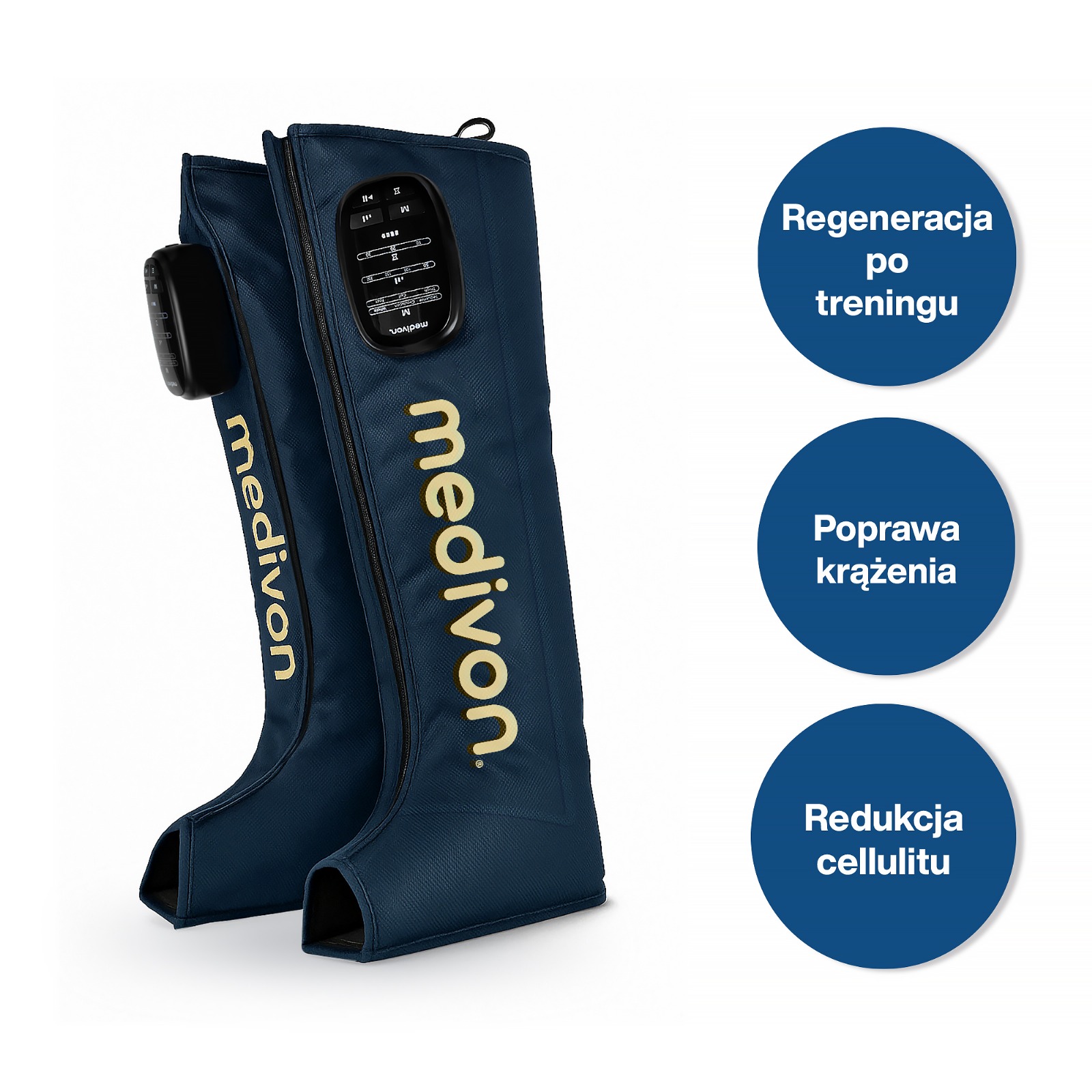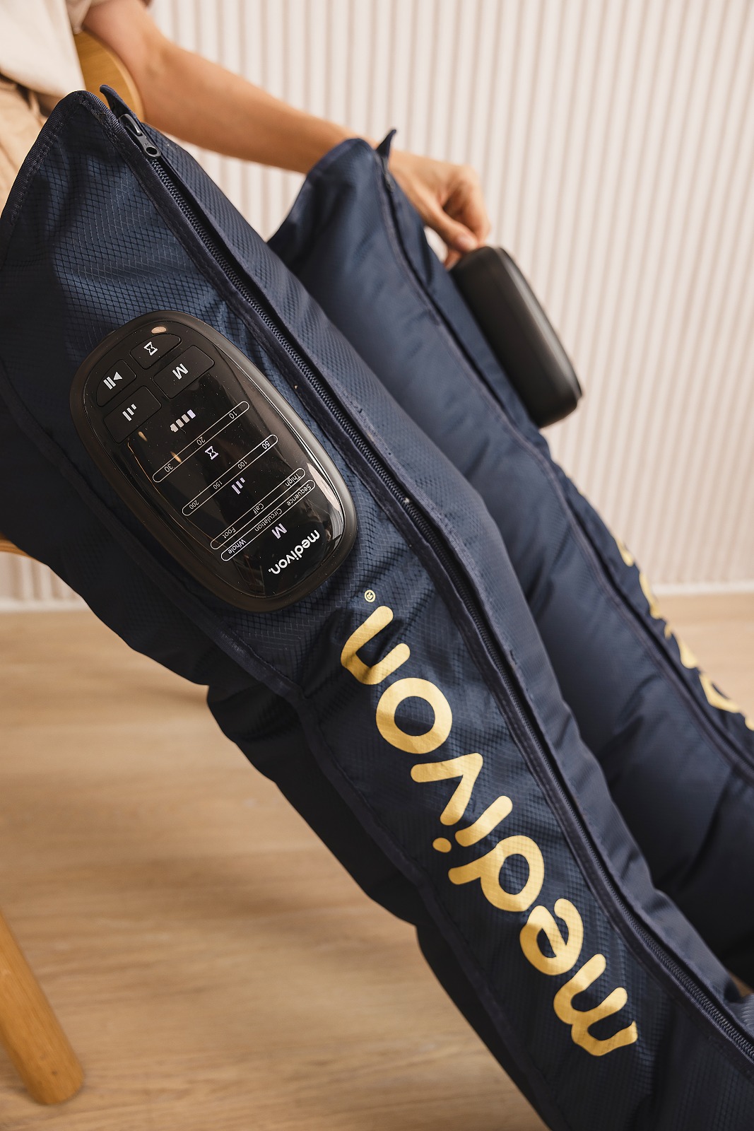 MEDIVON Aeria to masażer uciskowy, który skutecznie wspiera redukcję obrzęków oraz poprawę krążenia i regeneracji mięśni.
