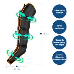 W urządzeniu dostępne są 4 różne tryby masażu oraz 8 poziomów intensywności, co pozwala dostosować je do indywidualnych potrzeb każdego użytkownika. Masażer umożliwia wykonanie kompleksowego masażu na konkretnej części nogi, takiej jak stopa, łydka, kolano czy udo. Można wybrać tryb skoncentrowany na redukcji cellulitu, oczyszczaniu organizmu lub wspomaganiu regeneracji po treningu. Bez względu na Twoje preferencje, uciskowy masażer limfatyczny zapewnia uniwersalne doświadczenie wellness w zaciszu Twojego domu.