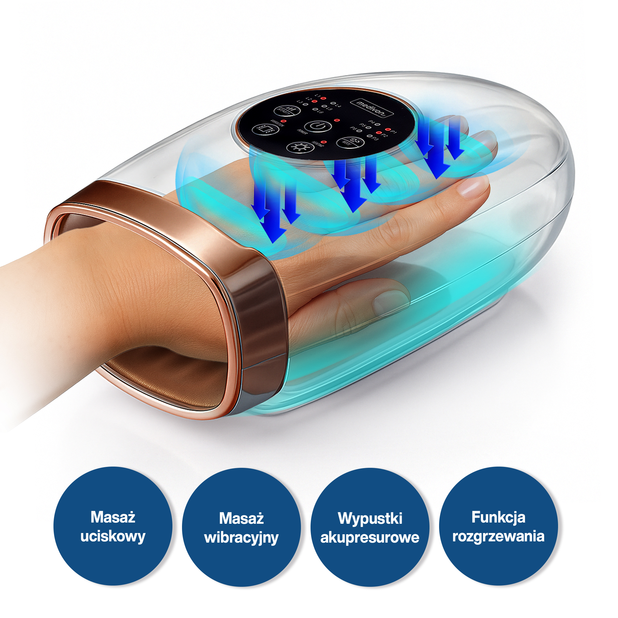 Masażer dłoni Hand LUX to kwintesencja luksusu i zaawansowanej technologii w świecie masażerów. Chociaż wyposażony jest w trzy tryby masażu - to Hand LUX wyróżnia się nieporównywalną intensywnością i głębią każdego z tych trybów. Jego wyjątkowa moc sprawia, że każdy masaż przynosi nie tylko ulgę, ale i głęboki relaks dla dłoni. Dodatkowo, Hand LUX charakteryzuje się dużym, czytelnym panelem sterowania, który elegancko i intuicyjnie informuje użytkownika o wybranym trybie masażu i innych istotnych aspektach użytkowania.