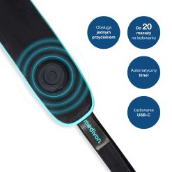 Medivon Motion X obsługiwany jest jednym przyciskiem, co czyni go intuicyjnym w codziennym użyciu. Wbudowana bateria litowo-jonowa o pojemności 2000 mAh ładowana jest przez nowoczesne złącze USB-C, dzięki czemu można korzystać z dowolnego źródła zasilania – laptopa, powerbanka lub ładowarki sieciowej. Zawsze gotowy do działania, oferuje relaks i ulgę dokładnie wtedy, gdy tego potrzebujesz.