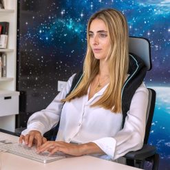 Kołnierz wykonano z połączenia miękkiej tkaniny i trwałych tworzyw sztucznych. Uchwyt do regulacji nacisku umożliwia dopasowanie siły masażu do indywidualnych preferencji, a eko-skóra ułatwia utrzymanie urządzenia w czystości. Cicha praca silnika sprawia, że masaż jest przyjemny i dyskretny – bez hałasu, który mógłby zakłócać spokój.