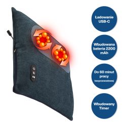 Prosta i szybka obsługa, wspomagana przez bezprzewodową konstrukcję, umożliwia łatwe korzystanie z urządzenia w dowolnym miejscu i czasie. Dzięki temu masażer staje się niezastąpionym towarzyszem w domu, pracy czy w podróży, zapewniając dostęp do relaksu i terapii bez ograniczeń. Gdziekolwiek pójdziesz możesz go wziąć ze sobą.