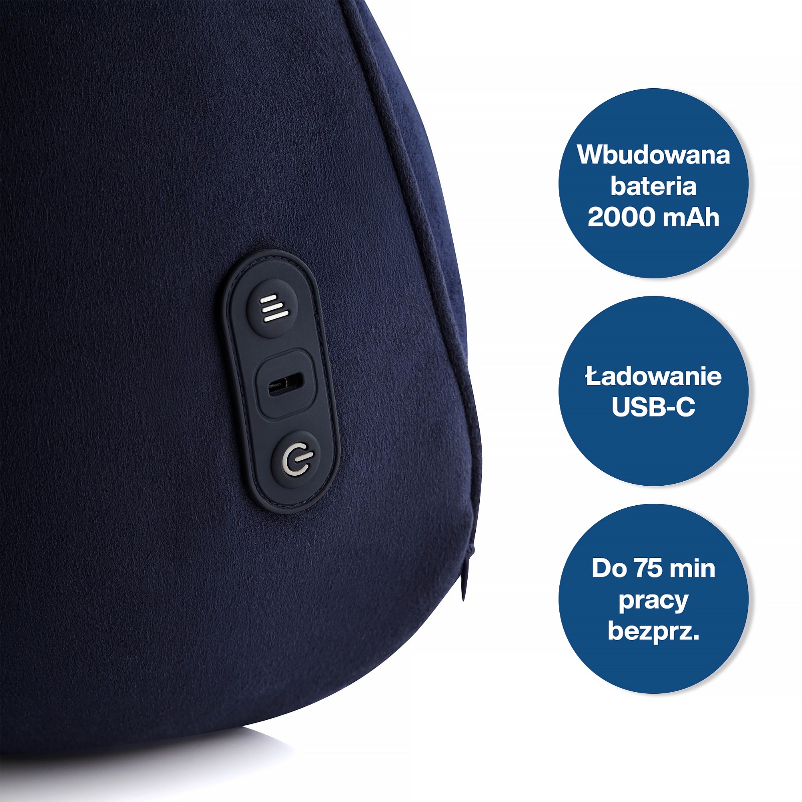 Dzięki bezprzewodowej konstrukcji, poduszka masująca Zona zapewnia pełną swobodę użytkowania. Bez konieczności zmagania się z przewodami, możesz cieszyć się profesjonalnym masażem w dowolnym miejscu i czasie. To idealne rozwiązanie zarówno do domu, jak i w podróży.