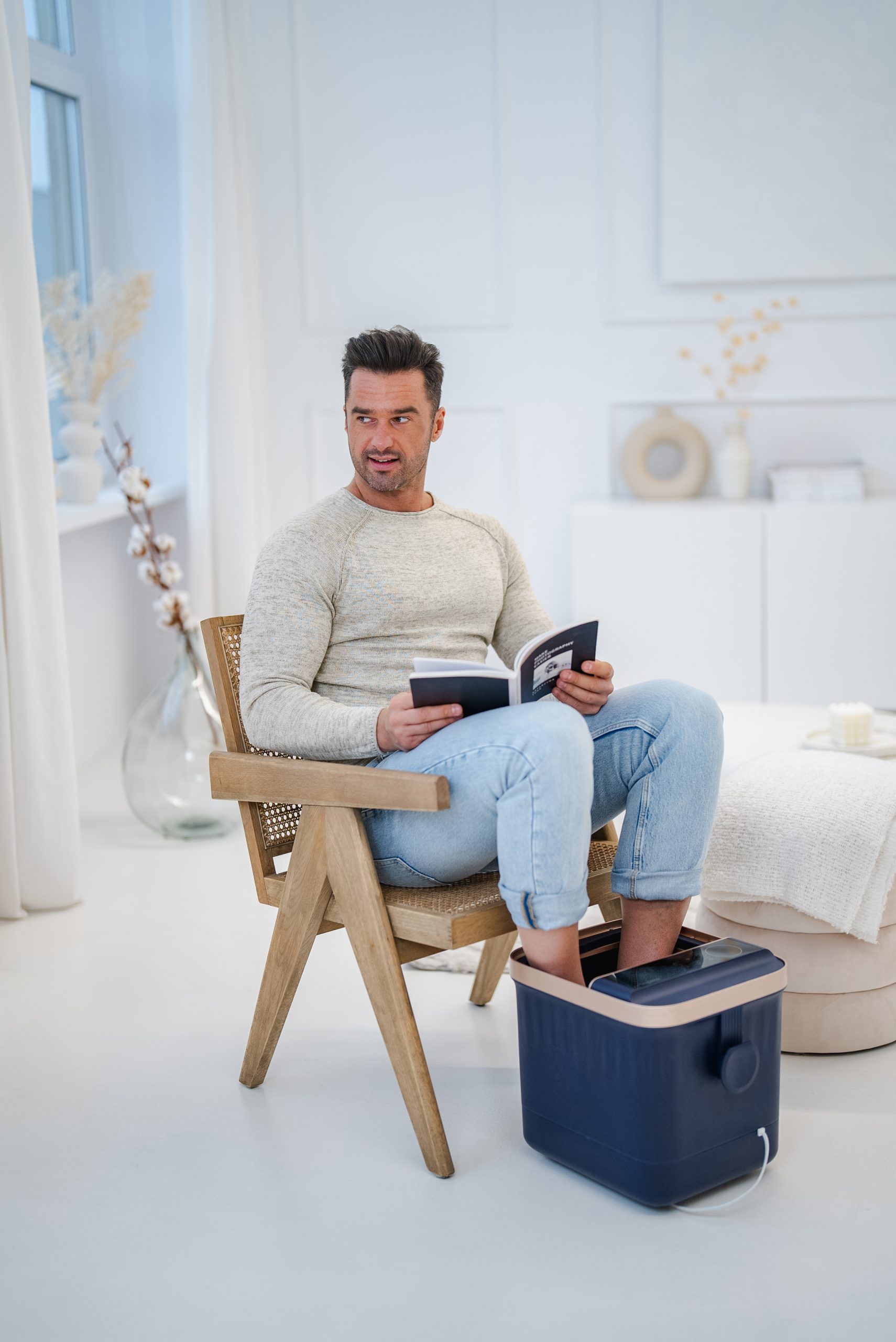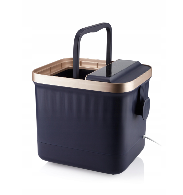 Masażer posiada pojemność 20 litrów, co zapewnia wystarczająco dużo miejsca do komfortowego umieszczenia obu stóp i optymalnego wykorzystania funkcji masażu. Masażer został zaprojektowany z myślą o łatwości użytkowania, oferując prosty i wygodny system odpływu wody, który pozwala na szybkie i bezproblemowe opróżnianie urządzenia po zakończeniu sesji masażu.